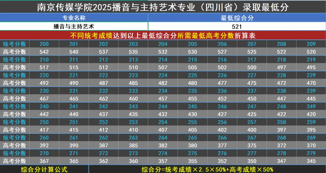 >南京传媒学院2025年播音与主持艺术专业(四川省)录取最低综合分对应文化和专业要求