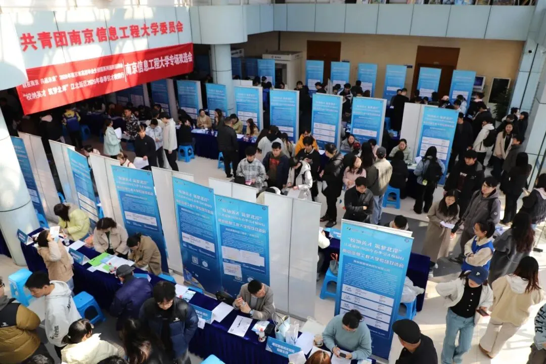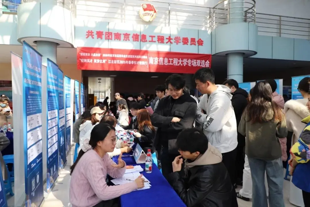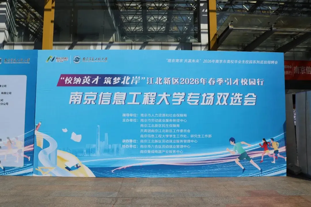 3月13日下午,由南京江北新区民生保障局主办的2026年“校纳英才 筑梦北岸”春季引才校园行活动走进南京信息工程大学。本次活动吸引了65家优质企业参会,共提供900个就业岗位。活动现场人气爆棚,进场人数600余人,共收取简历815份。