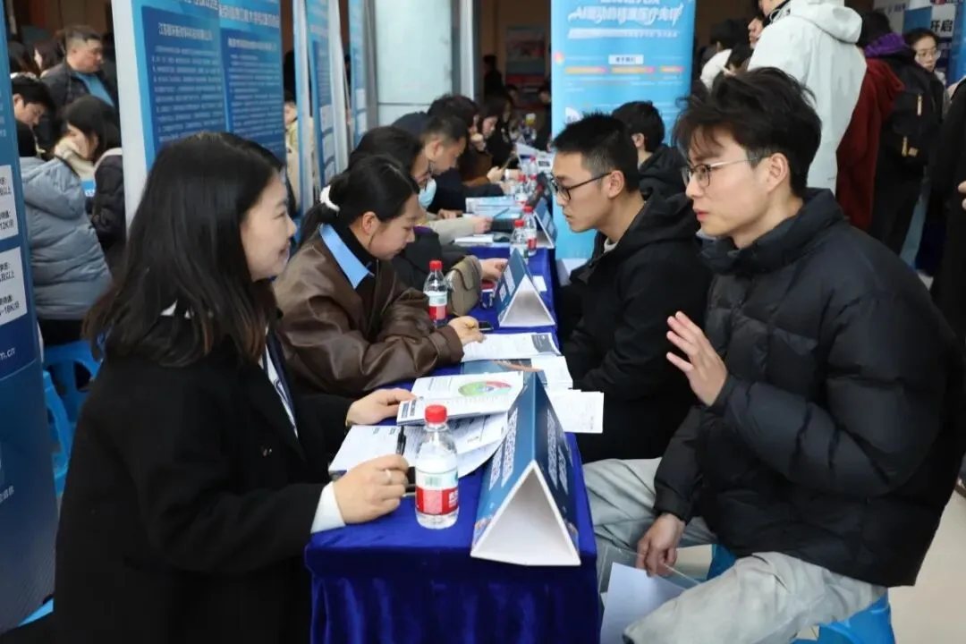 招聘会现场气氛热烈,前来应聘的毕业生拿着精心准备的简历,积极与招聘企业交流,详细了解招聘岗位要求、待遇以及发展前景,用工求职双方的匹配程度和需求意愿都较高。