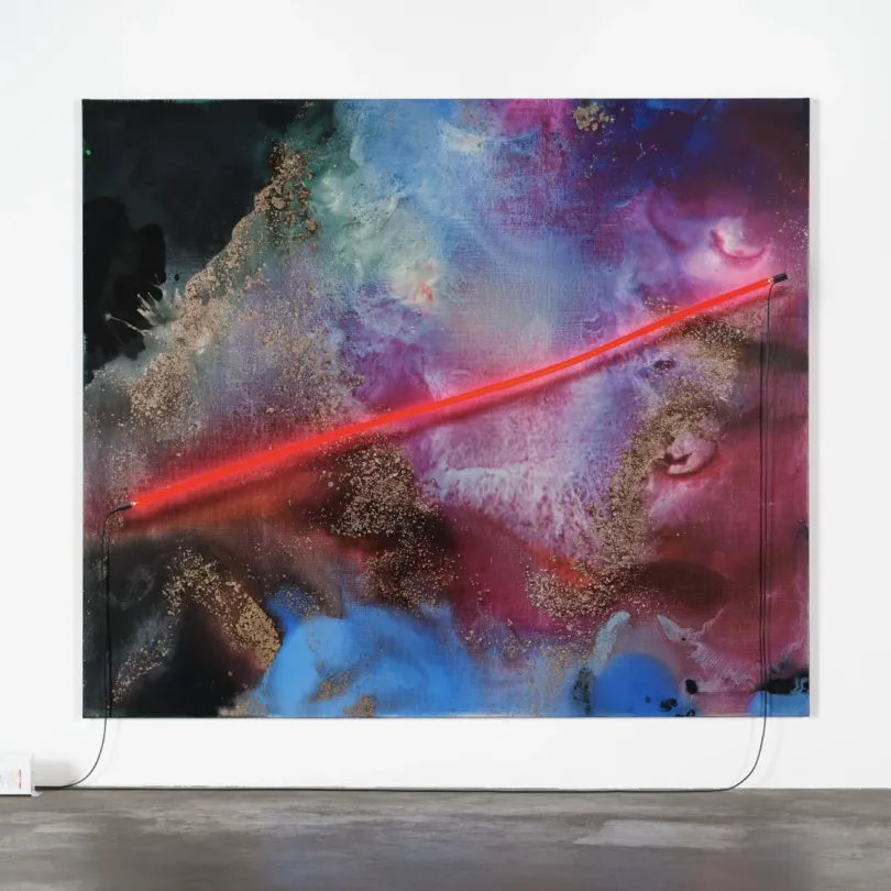 展览呈现艺术家标志性霓虹灯管绘画新作。