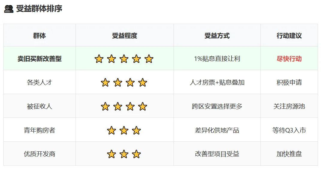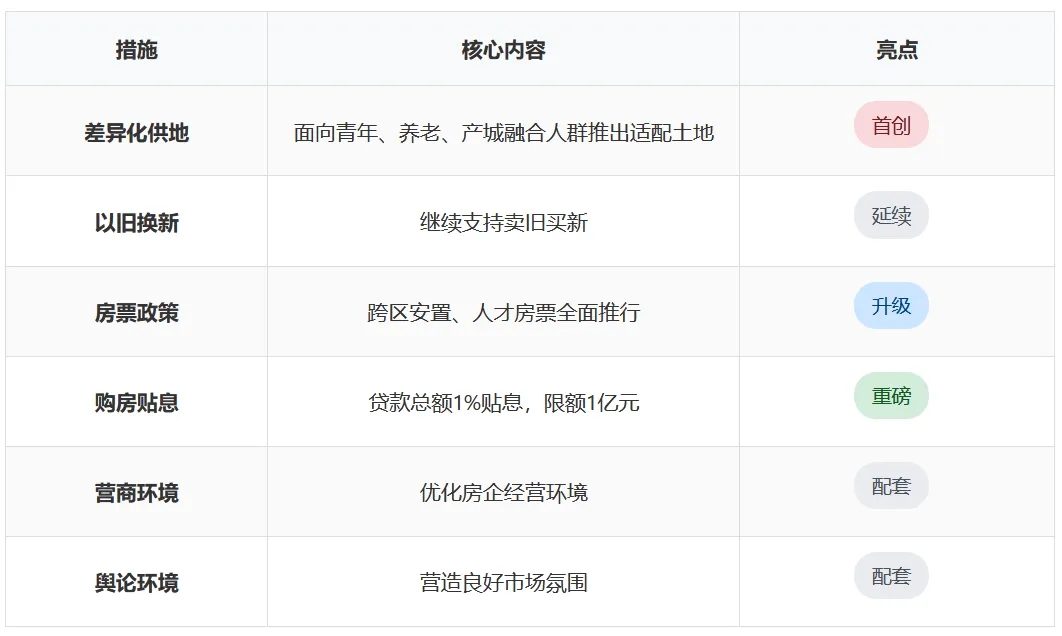 1亿元财政贴息直接让利,预计撬动100亿贷款规模;"一类群体一策"差异化供地机制属首创。短期成交量有望提升15-20%,价格止跌企稳概率高。