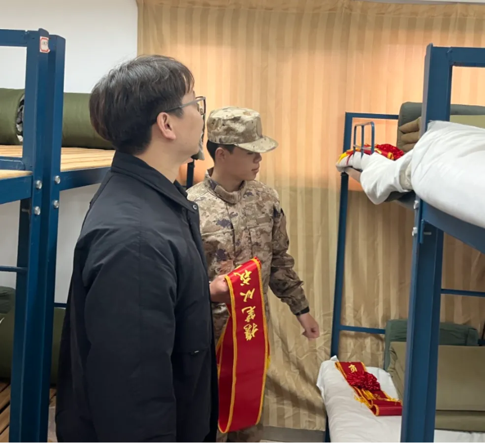 老师们一同走进学生宿舍,详细了解入伍学生的训练和生活情况,带去学校领导和老师的关心鼓励,让即将启程的学子们倍感温暖与鼓舞,也希望他们始终以中国人民解放军“三大条令”为准则,早日成长为素质过硬的钢铁战士。