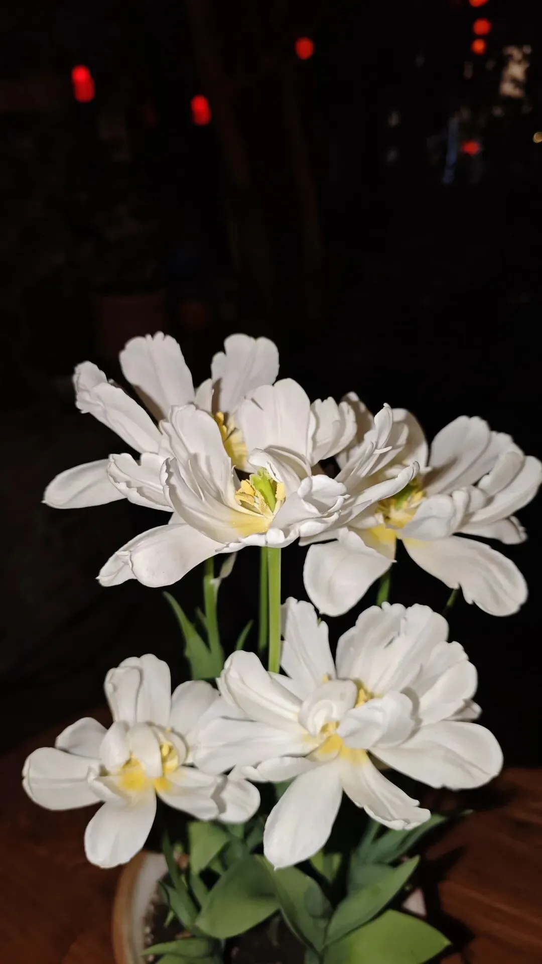 - 花色:洁白的花瓣搭配中心明亮的黄色花蕊,视觉清新雅致,在夜晚灯光下更显温柔。