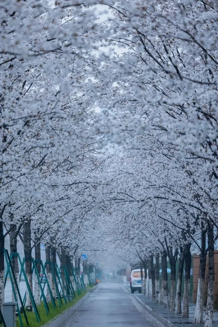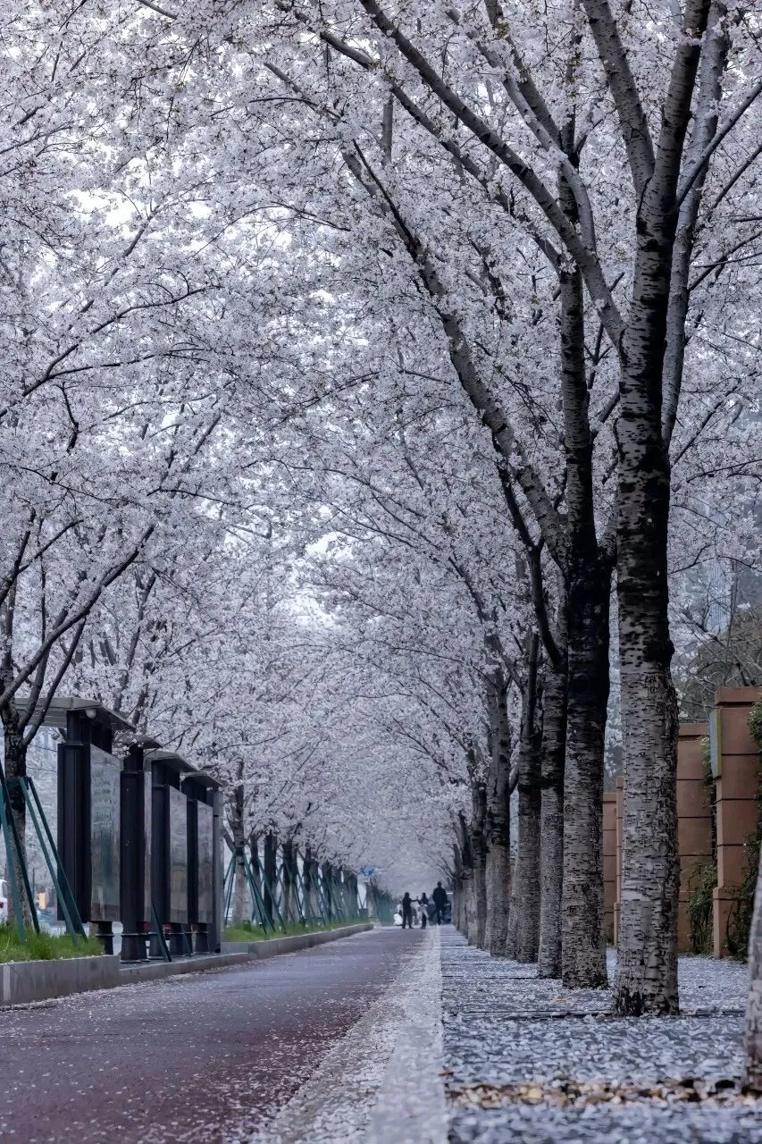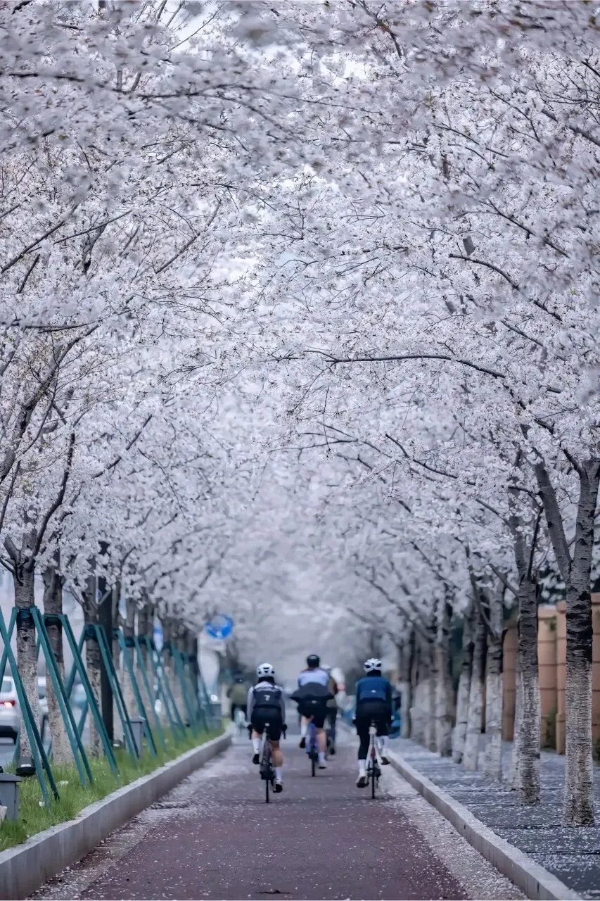 南京江北区凤滁路和临滁路两侧樱花,此时开得正盛。一阵轻风吹过,花瓣便簌簌而落,铺满路面。走在上面,脚下是一条通往春天的花径。偶尔有几片调皮的花瓣落在肩头,让人不忍拂去。珍珠河樱花美出圈
