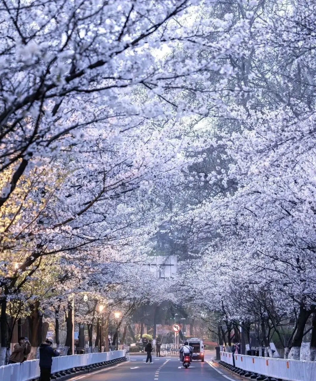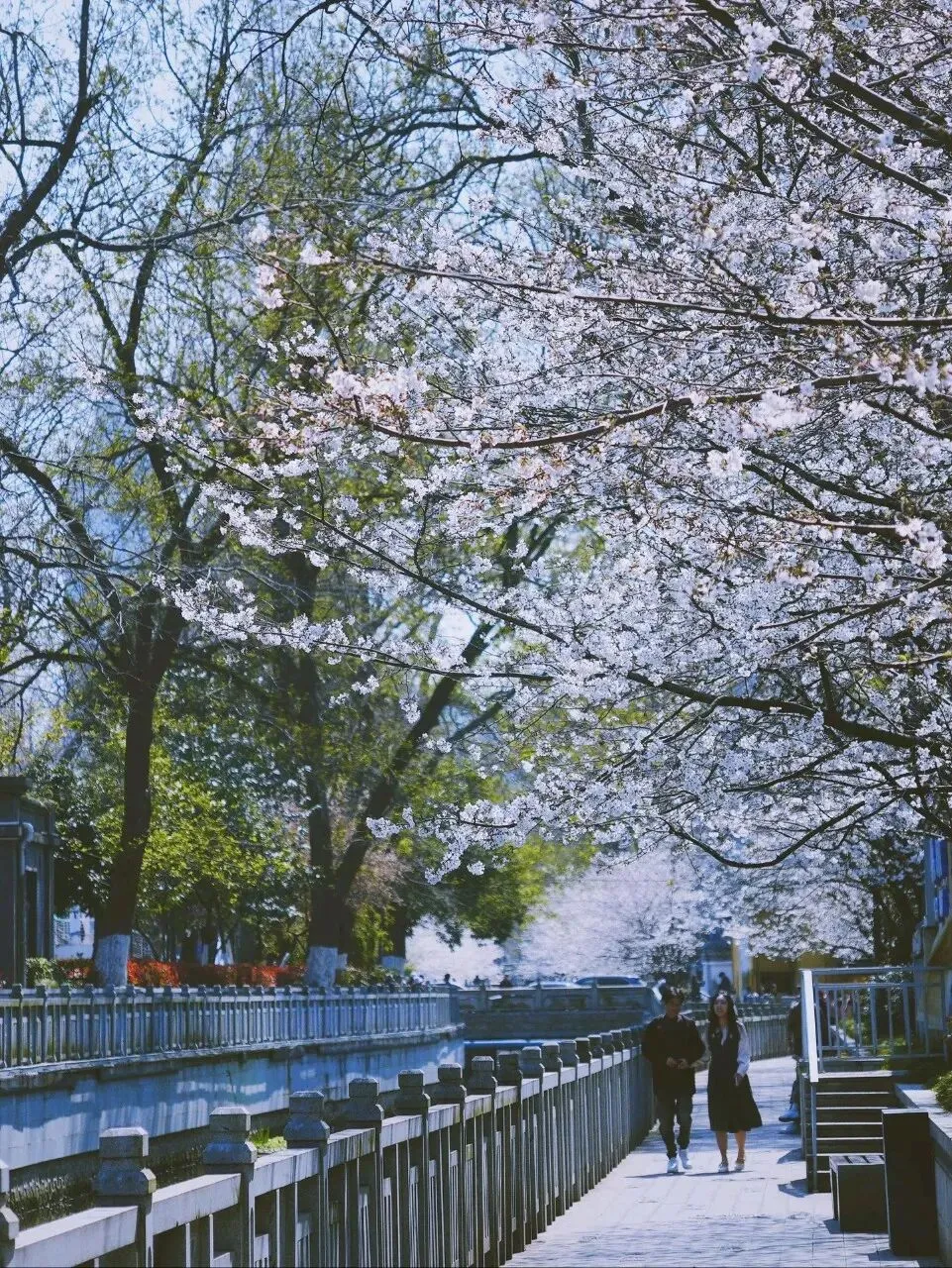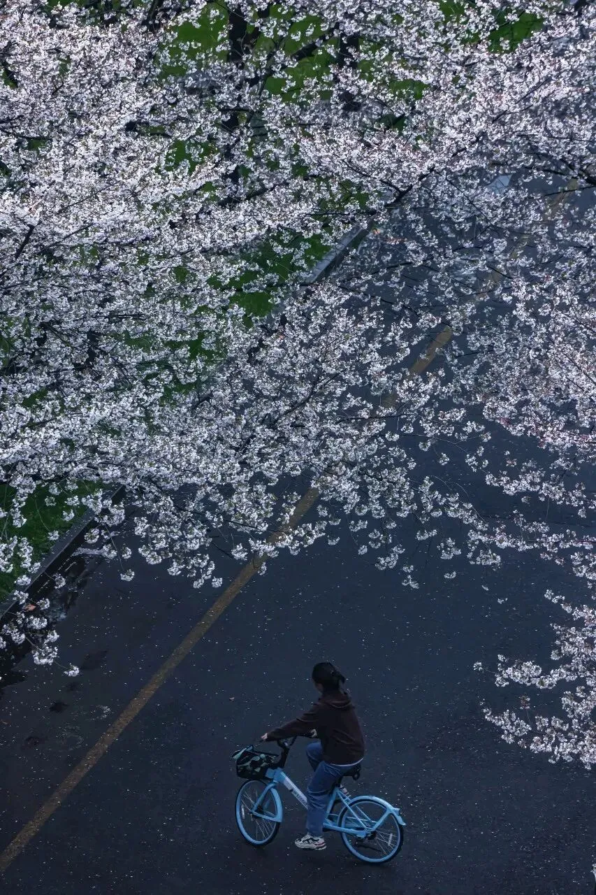 南京江北区凤滁路和临滁路两侧樱花,此时开得正盛。一阵轻风吹过,花瓣便簌簌而落,铺满路面。走在上面,脚下是一条通往春天的花径。偶尔有几片调皮的花瓣落在肩头,让人不忍拂去。珍珠河樱花美出圈