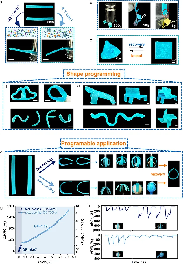 图4 利用热历史调控实现形状记忆、塑形、传感识别等应用