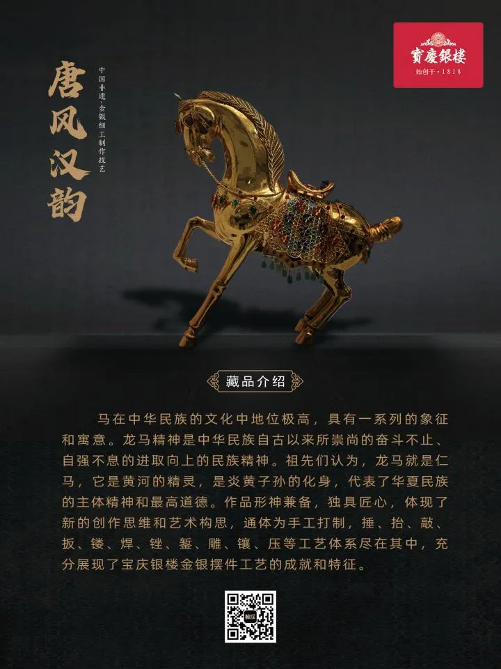 作为创始于清朝嘉庆年间的国内久负盛名的老字号银楼之一,宝庆银楼从事传统金银饰品(摆件)工艺已有200年历史。宝庆金银细工作品完整地继承了我国古代金银制品制作工艺,,沿袭了百年老店的传统技艺,经过10多道工艺流程,7大类制作手法,造型上富有时代气息,因此形成了宝庆金银细工作品特有的风格和特征。