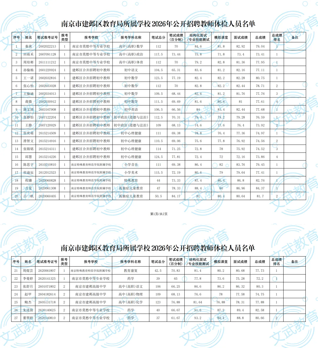附件:南京市建邺区教育局所属学校2026年公开招聘教师体检人员名单