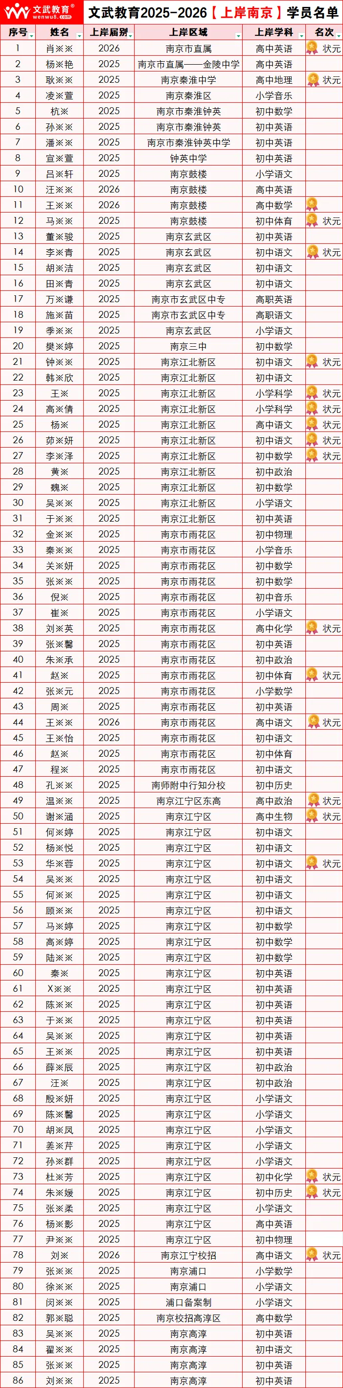 文武往年上岸学员