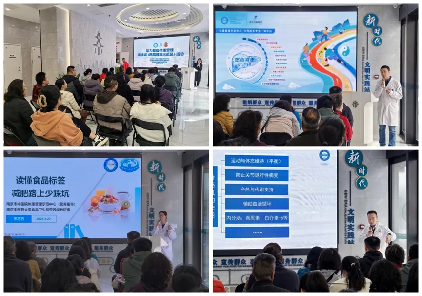 3月22日上午,为积极响应国家“体重管理年”三年行动,助力基层体重管理,我院体重管理示范中心,南京市中医院(南京市体育医院)体重管理示范中心专家团队一行,前往海峡城社区卫生服务中心,举办了2026年首场“科学减重,健康启航,燃脂减重示范区”主题活动,同时为我院体重管理示范中心海峡城社区分中心的成立揭牌。