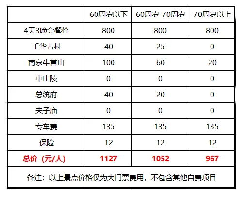 老爸老妈可以按需选择行程安排,如果按照以上行程推荐选择出行,除大交通外,4天3晚的总价如下: