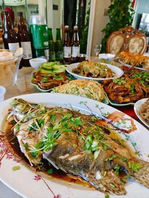 中午可以盯着海鲜做选择,但别被“现捞”两个字带着跑,本地人更在意火候。清蒸鱼要蒸到肉刚断生,筷子一拨就散,鱼皮亮但不腥。海蛎子要么葱姜快炒,要么煎蛋,外头一点焦香,里头是海的甜,嚼两下,嘴里有回味。