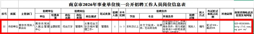 近日,南京市2026年事业单位统一公开招聘工作人员公告正式发布,面向残疾人设立了专项岗位,快来看看吧!