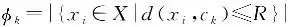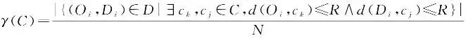 在聚类过程中,每次确定起降场候选点后,通过计算通勤需求覆盖率评估其对长距离通勤的服务能力。UAM行程可分为3个阶段:出发地至最近起降场的接驳出行、通过电动垂直起降飞行器完成主要航程,以及从到达起降场至最终目的地的末端出行。本文假设候选垂直起降场的服务半径R为3 km[23],当通勤起点与终点分别落入不同起降场的服务范围内时,判定通勤需求得到有效覆盖。站点布局的起讫点对覆盖率为