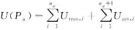 式中,na为智能体a的行程数;βact为活动的时间边际效用;βtrav,q为出行方式q的时间边际效用;βm为单位出行距离的金钱边际效用;σq为出行方式q的单位距离出行费用;ttyp,i、tact,i、t0,i分别为第i项活动的典型、实际和最小持续时间;ti为第i段出行的时间;di为第i段出行的距离;VTTSq为出行方式q的出行时间节省价值。