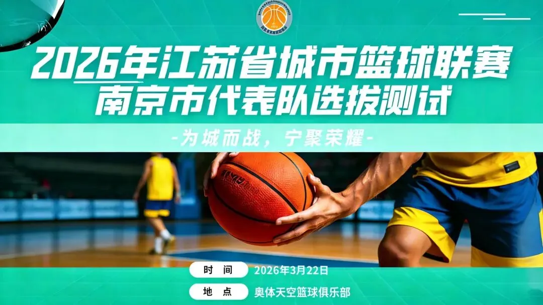 本次选拔将初步确定试训人员大名单,旨在为南京征战2026年江苏省城市篮球联赛做好充分准备。随后,队伍将进行两个阶段的试训,并最终遴选出20名正选球员代表南京出战。