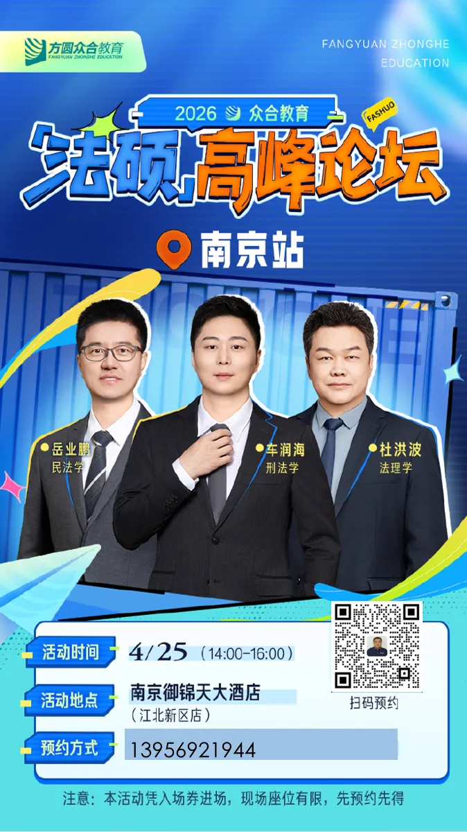 一年一度的法硕大讲坛活动来了,4月25号,南京(南京御锦天大酒店江北新区店),杜老师+岳老师+车老师与你们不见不散!