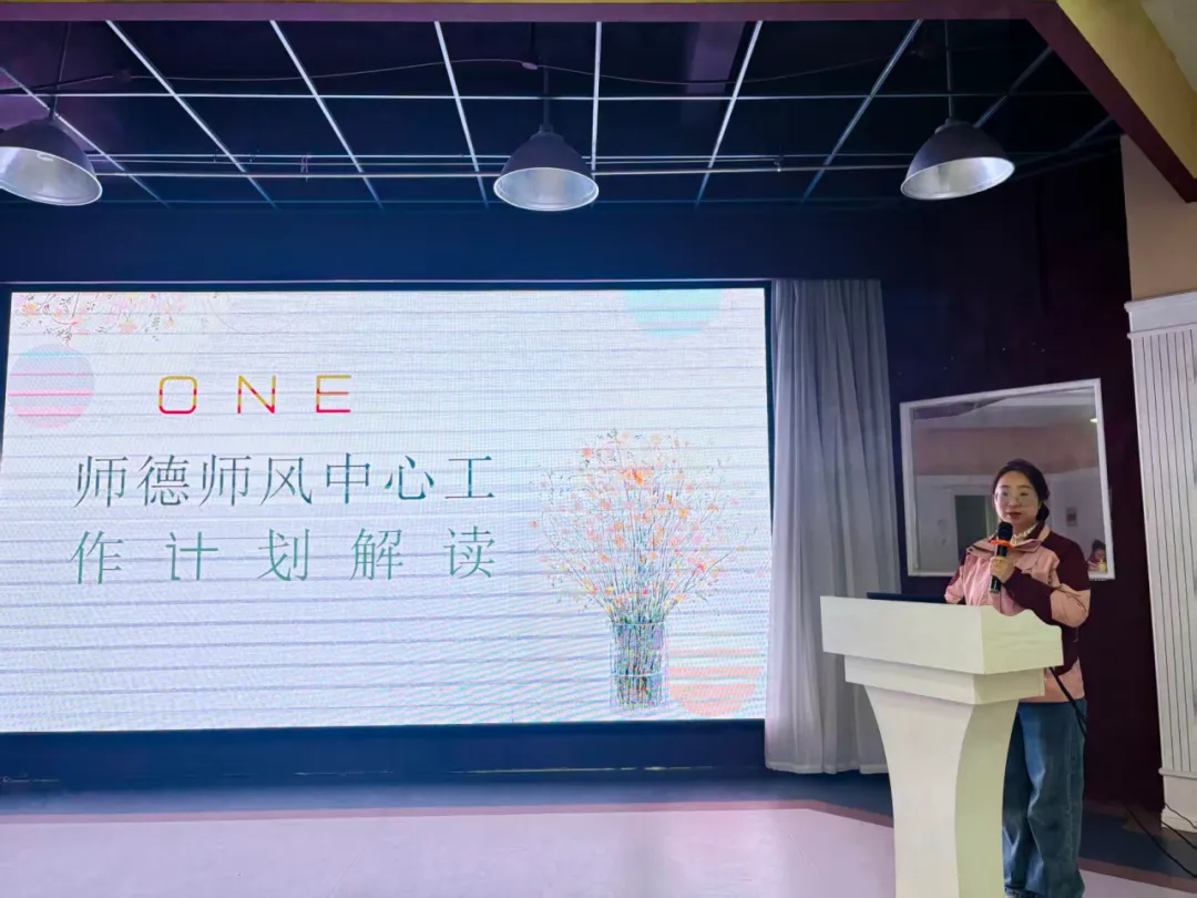 师德师风中心主任戴蓉对本学期师德工作计划进行解读,从主要任务、具体目标与措施、各月工作安排等方面明确了方向与重点,确保中心各项工作有序推进。