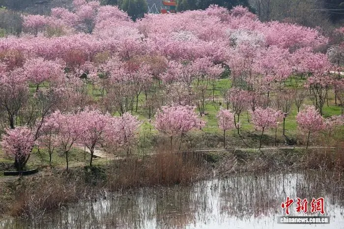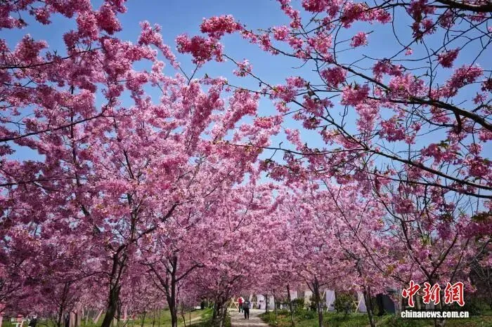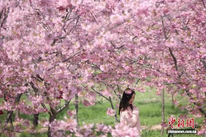 3月21日,江苏南京,花舞辰宁文化园内千亩粉色花海呈现春日浪漫。中新社记者 泱波 摄