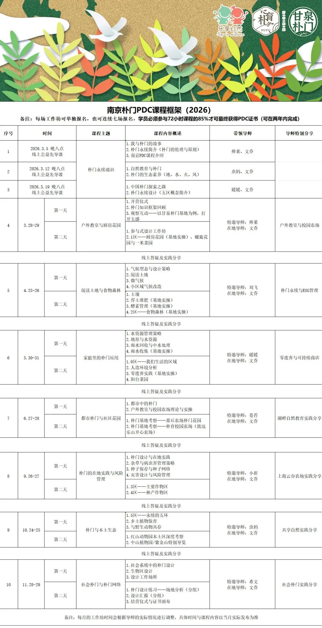 2026南京朴门PDC课程报名表