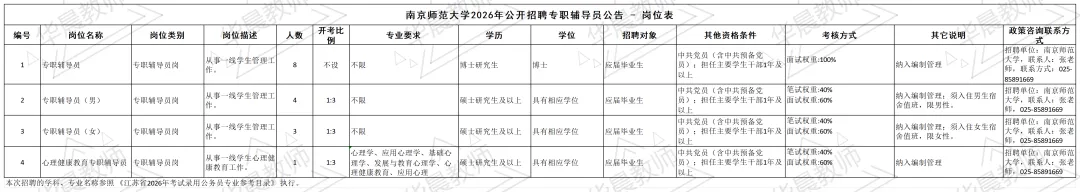 南京师范大学2026年公开招聘专职辅导员公告-岗位表.xlsx