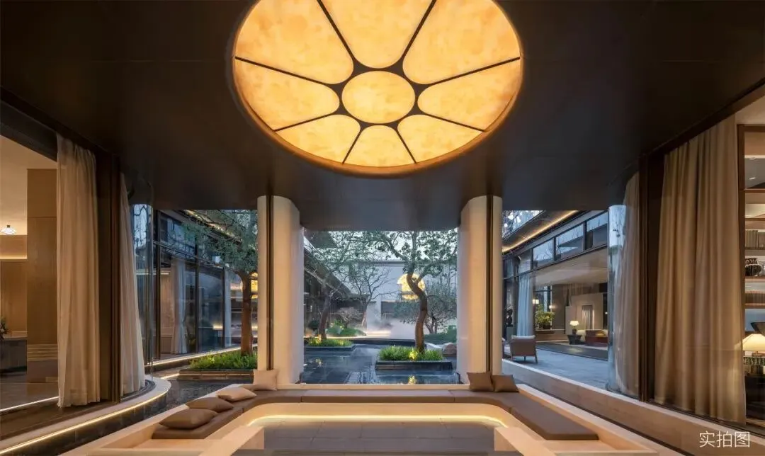 约2000㎡「誉见生活馆」下沉式会所,以全明设计将光线与风景引入地下。私宴厅配备全景落地玻璃,宴客会友时,窗外流水潺潺,屋内言笑晏晏。