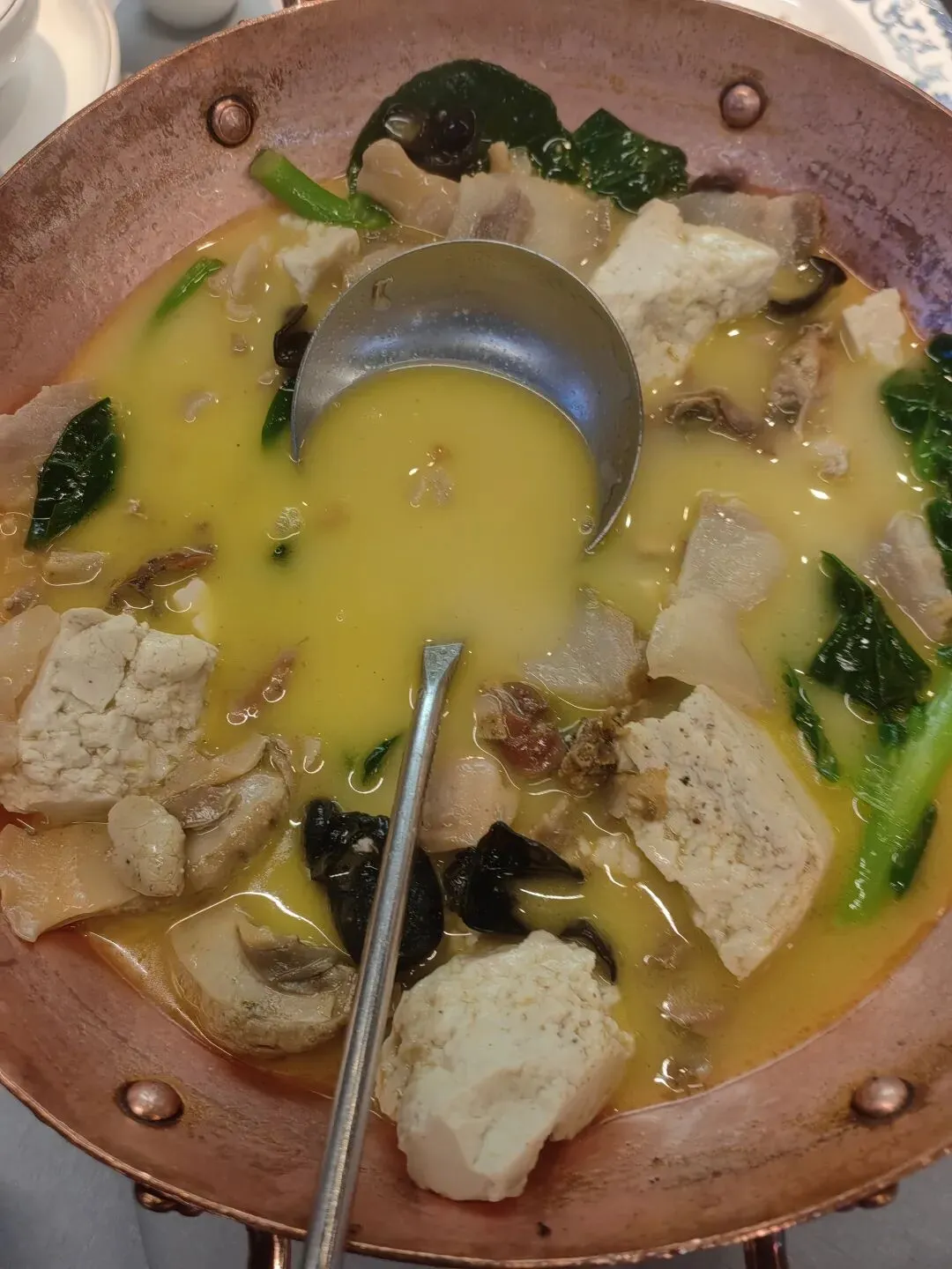 煮河蚌的火候恰到好处,里面放了咸肉起鲜,因而汤汁浓郁,豆腐软而不散,青菜芯点缀,鲜美无比。