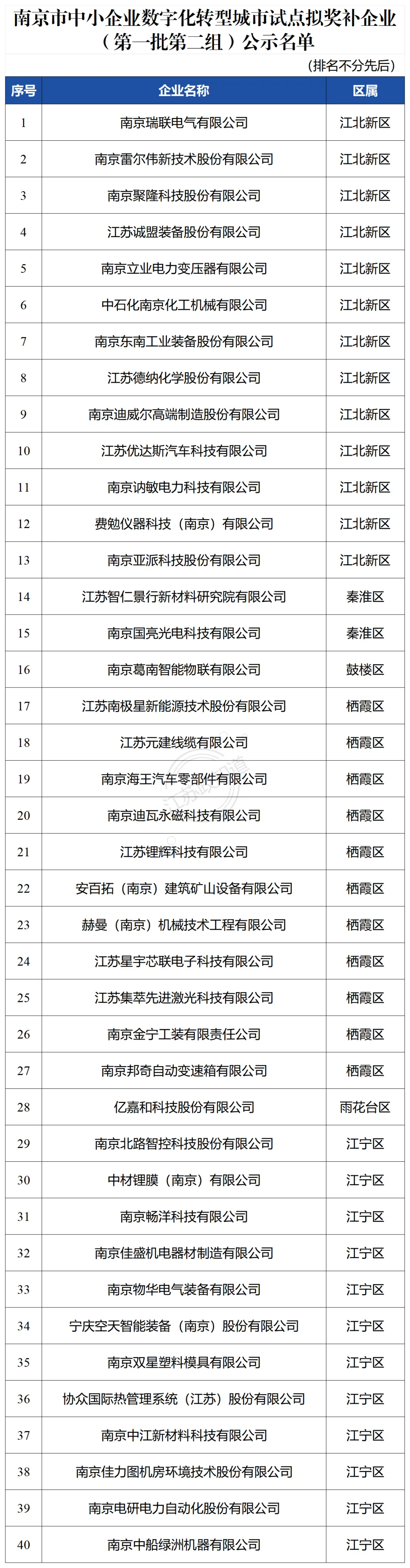 关于南京市中小企业数字化转型城市试点拟奖补企业(第一批第二组)名单的公示