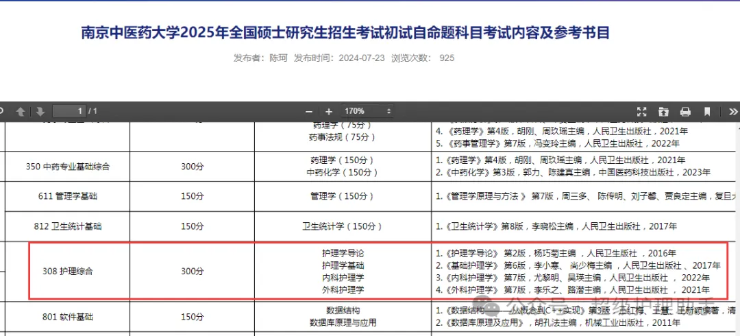 护理综合:内科护理学、外科护理学、基础护理学、护理学导论。