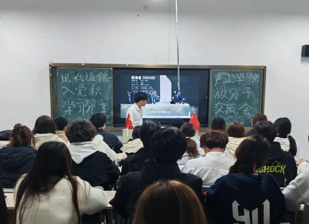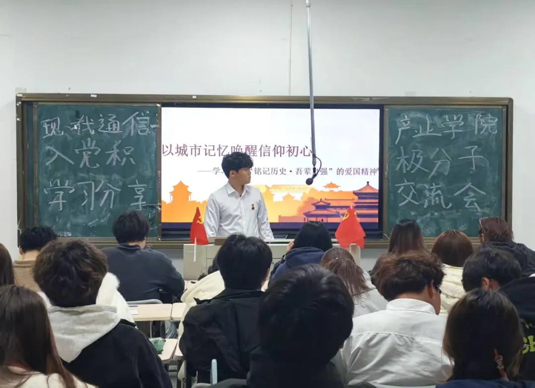 为深入学习贯彻习近平新时代中国特色社会主义思想,厚植入党积极分子的爱国情怀与使命担当,3月19日晚21:10,现代通信产业学院学生党支部在教学楼A602开展入党积极分子学习分享交流会之“以城市记忆唤醒信仰初心——学习南京‘铭记历史,吾辈自强’的爱国精神”专题学习会,本次学习会由林宇恒主讲,全体入党积极分子共同参与。