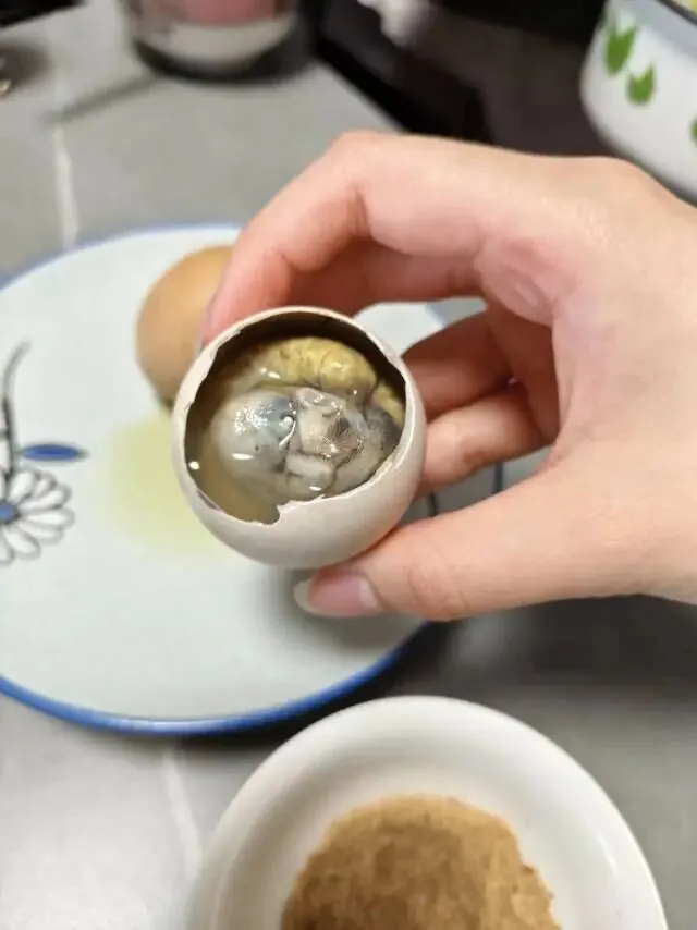 旺鸡蛋跟活珠子名气不相上下,孵化时间再多几天(不能超过19天,超过了蛋壳就通了,会长菌,不能再吃了),等胚胎长出了毛,就是旺鸡蛋,跟活珠子的区别,有点像溏心蛋和全熟蛋。