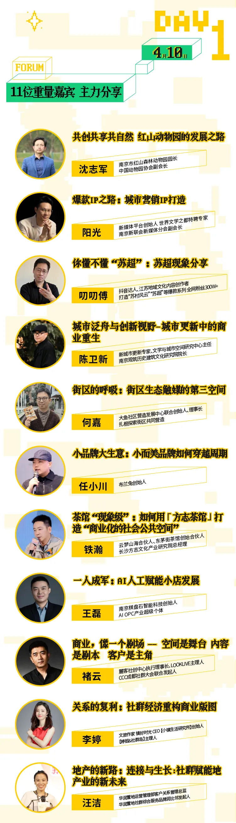 这是一场商业人的盛会,更是一场思想的盛宴。在主力分享环节,11位重量级嘉宾将围绕“红山动物园的发展之路”“小而美品牌穿越周期”“地域文化IP打造”“苏超现象”等主题展开深度对话。