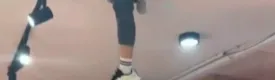 湖北武汉一顾客在店内吃牛蛙,天花板突然掉出一条人腿,被吓出表情包,店家:掉下来的是服务员,人没事,楼上装修导致