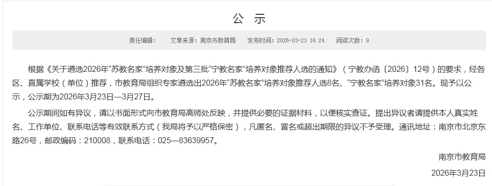 南京市教育局发布