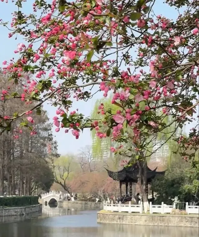 满城粉雾、漫园云霞,43个品种、上万株海棠同时绽放,把整座湖园变成了南京春天最顶流的现场。