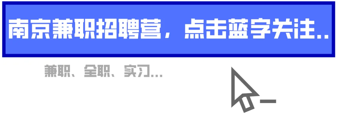 南京兼职招聘营【温馨提醒】:南京兼职全职需谨慎,请先核实招聘方身份,仔细了解招聘内容,如工资结算时间、工作时间、工资提成等,切勿轻易转账、交订金等。本公众号招聘信息解释权归原发布者,招聘过程中产生的一切问题,与本公众号无关。