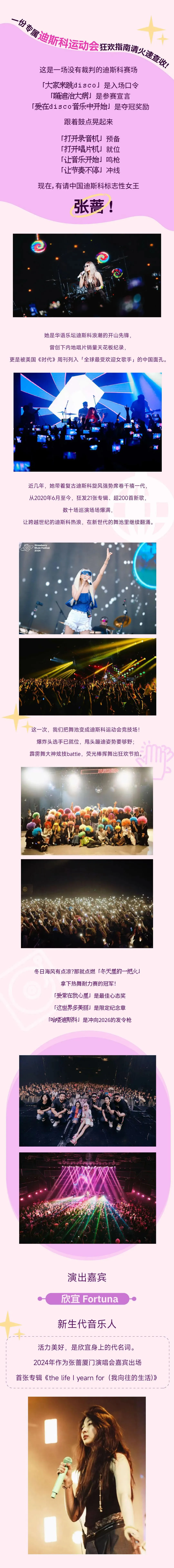 从1985年出道至今40年的音乐历程她是中国迪斯科的标志性人物她的音乐同时吸引60后至00后的观众群打破年代之间的界限张蔷的现场是快乐与多彩的代名词