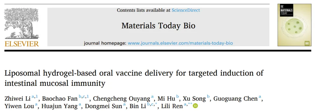 南京工业大学《Mater. Today Bio》:用于靶向诱导肠道黏膜免疫的脂质体水凝胶口服疫苗递送平台