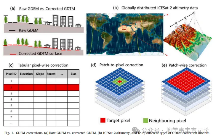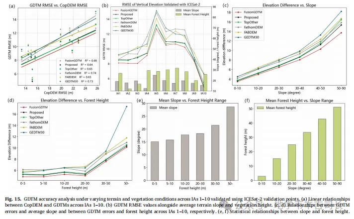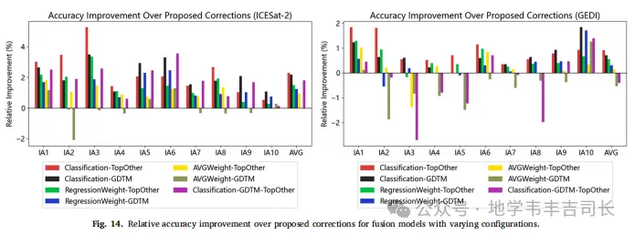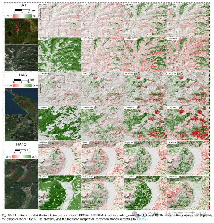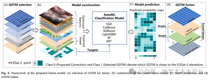 为了进一步提高修正精度,本文提出了一个GDTM融合模型,通过集成不同来源的GDTM修正结果来实现更高的精度。通过结合ICESat-2等全球分布的高程卫星数据,融合模型有效地提升了修正后的GDTM精度,尤其是在训练区域之外的应用中,修正精度得到了显著提高。该方法的成功应用表明,融合多源数据对于克服单一数据源的局限性具有重要意义。