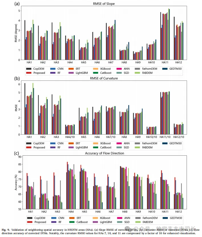 通过结合CNN与Transformer的优势,本文提出的混合修正模型显著提高了全球山区裸地高程模型(GDTM)的修正精度。该模型能够有效地捕捉山地复杂地形特征,并处理不同区域的高程偏差,尤其在垂直精度、坡度和曲率等方面展现了卓越的性能。实验结果表明,与传统修正方法相比,本文提出的模型具有更高的空间一致性和修正精度。