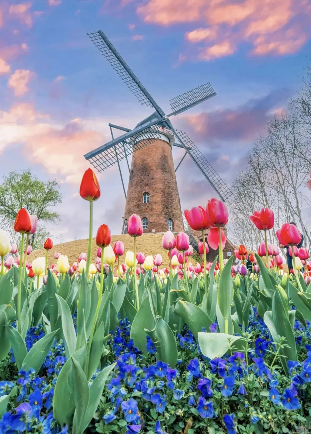 原来春天从不是抽象的词,是绿博园里18万株郁金香一起绽放的热烈,是风车转出来的浪漫,是手里那束花的温柔,是这一刻南京独有的春日氛围感。