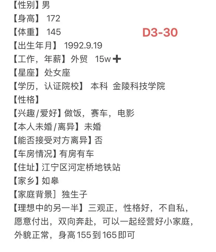 VIP专栏丨93年,女,身高160,南京理工大学毕业,上市公司采购工作,扬州人在江宁,有房,性格幽默大方