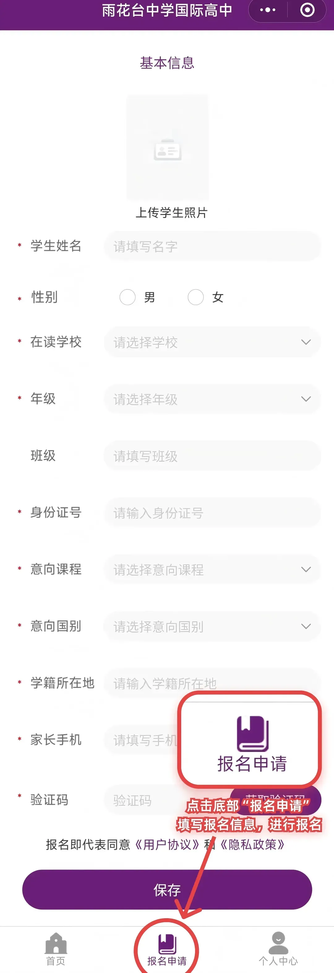 进入【报名申请】页面