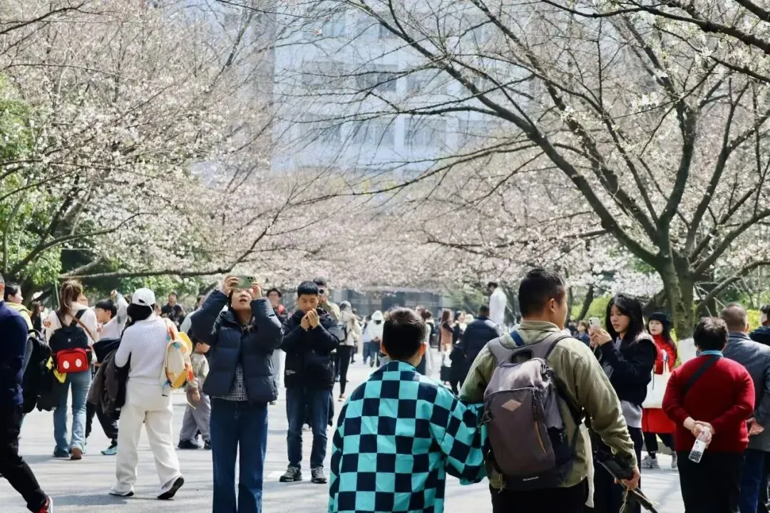 相比樱花大道拥挤的人流,