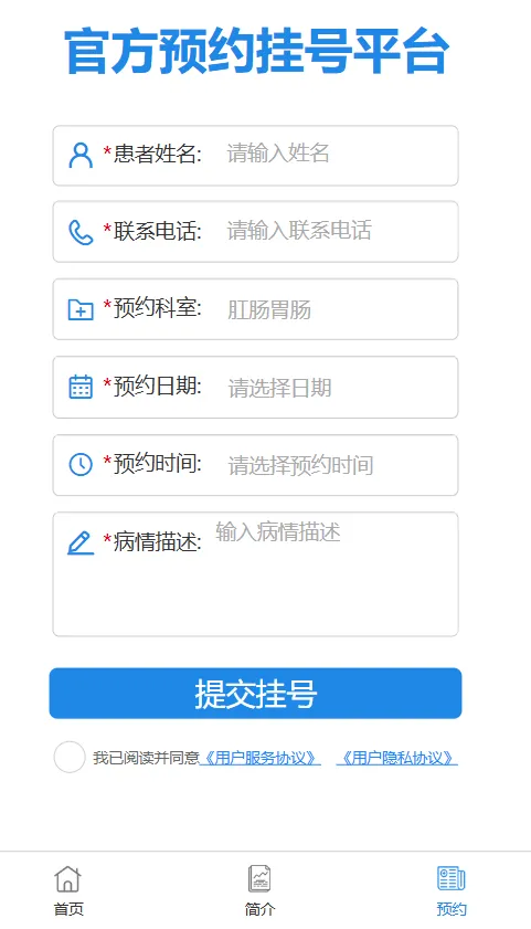 点击下方图片即可进入官方预约挂号通道,填写信息即可。