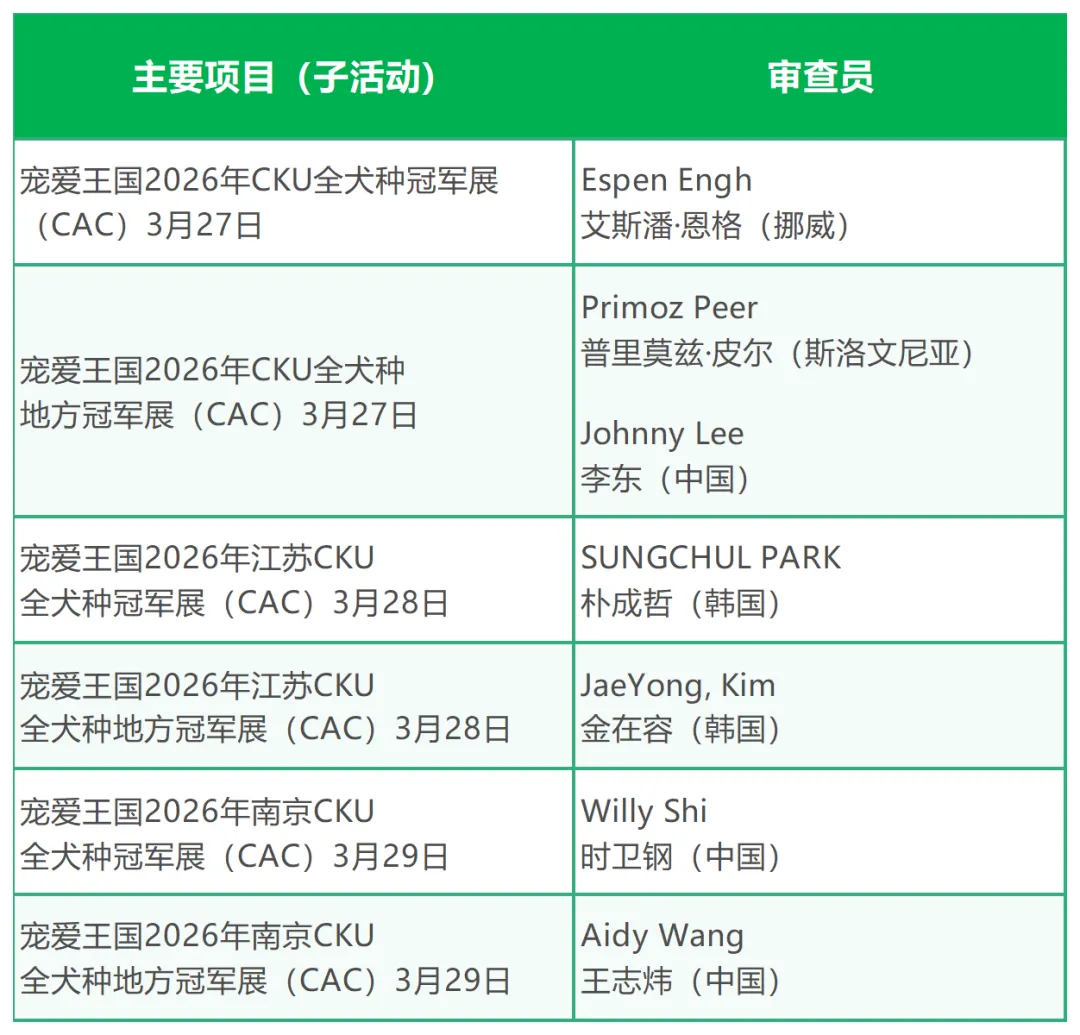“鲜朗杯”宠爱王国2026年南京CKU®优生繁育展为期3天,共有6场。7名来自国内外的全犬种审查员执裁,百余条血统赛犬同场竞技,共同争夺全场的最高荣誉。犬种分组
