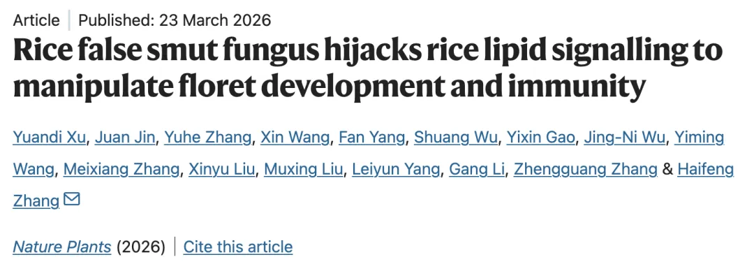 稻曲病由稻绿核菌(Ustilaginoidea virens) 引起,会提高病穗的空秕粒率,并降低花粉活力。尽管该病原菌采用花特异性侵染策略干扰水稻受精过程,但其背后的分子机制仍不明确。