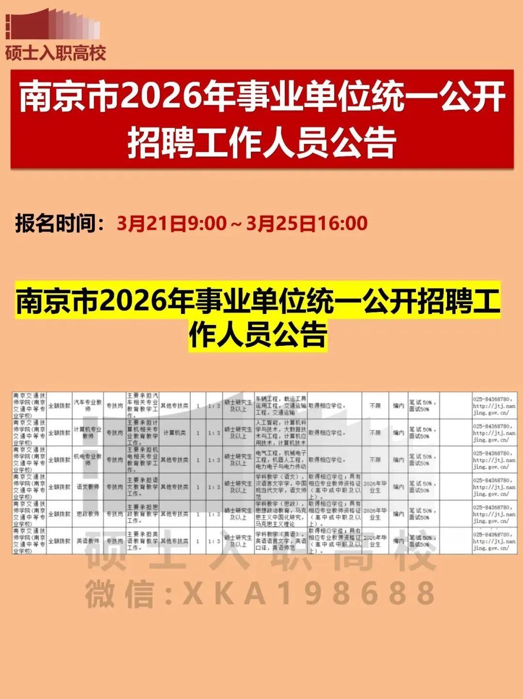 根据《江苏省事业单位公开招聘人员办法》(苏办发〔2020〕9号)精神,为更好地选拔优秀适岗人才,优化事业单位人员结构,南京市人力资源和社会保障局决定为市、区部分事业单位管理类岗位和通用类专业技术岗位公开招聘工作人员提供统一招聘服务。