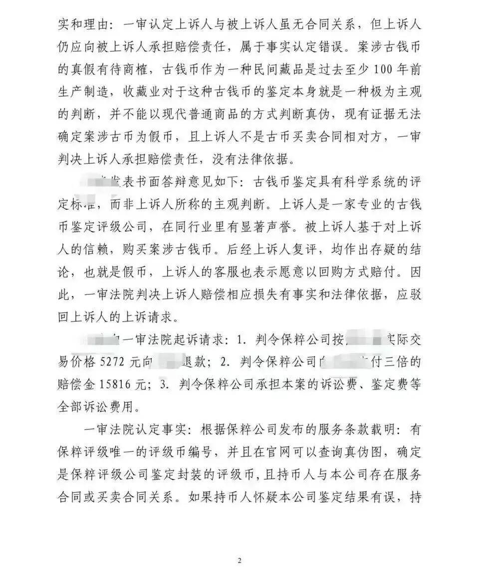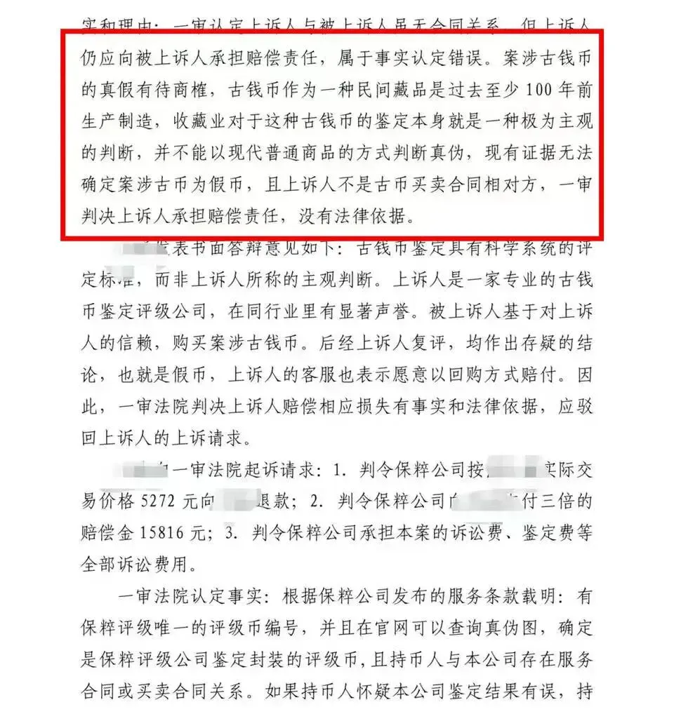接之前的文章:(一)起诉南京保粹钱币评级公司的判决下来了(二)起诉南京保粹钱币评级公司的后续来了