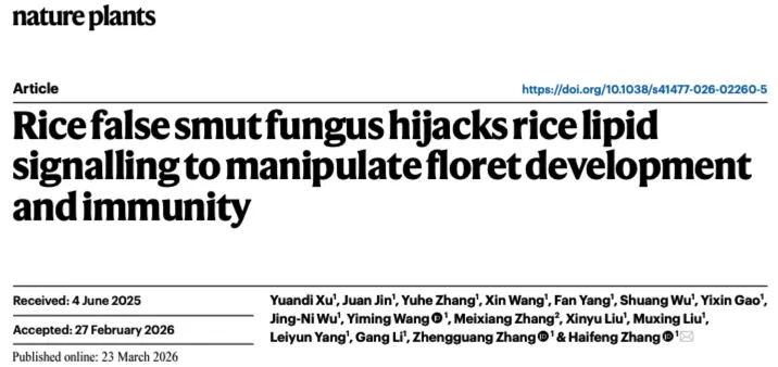 Nature Plants | 南京农大张正光/张海峰团队揭示稻曲病菌操控水稻发育与免疫